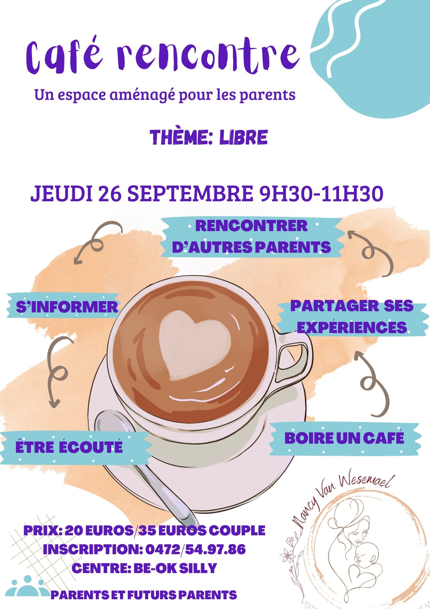 Be OK - Centre pluridisciplinaire Silly rue du Marais, SillyUn lieu chaleureux pour les parentsVenez partager un moment convivial autour d’un café dans notre atelier-rencontre. Un espace pensé pour les parents, où l’on peut échanger librement, rencontrer d’autres familles, s’informer, partager ses expériences, être écouté… et simplement prendre une pause dans un cadre accueillant.